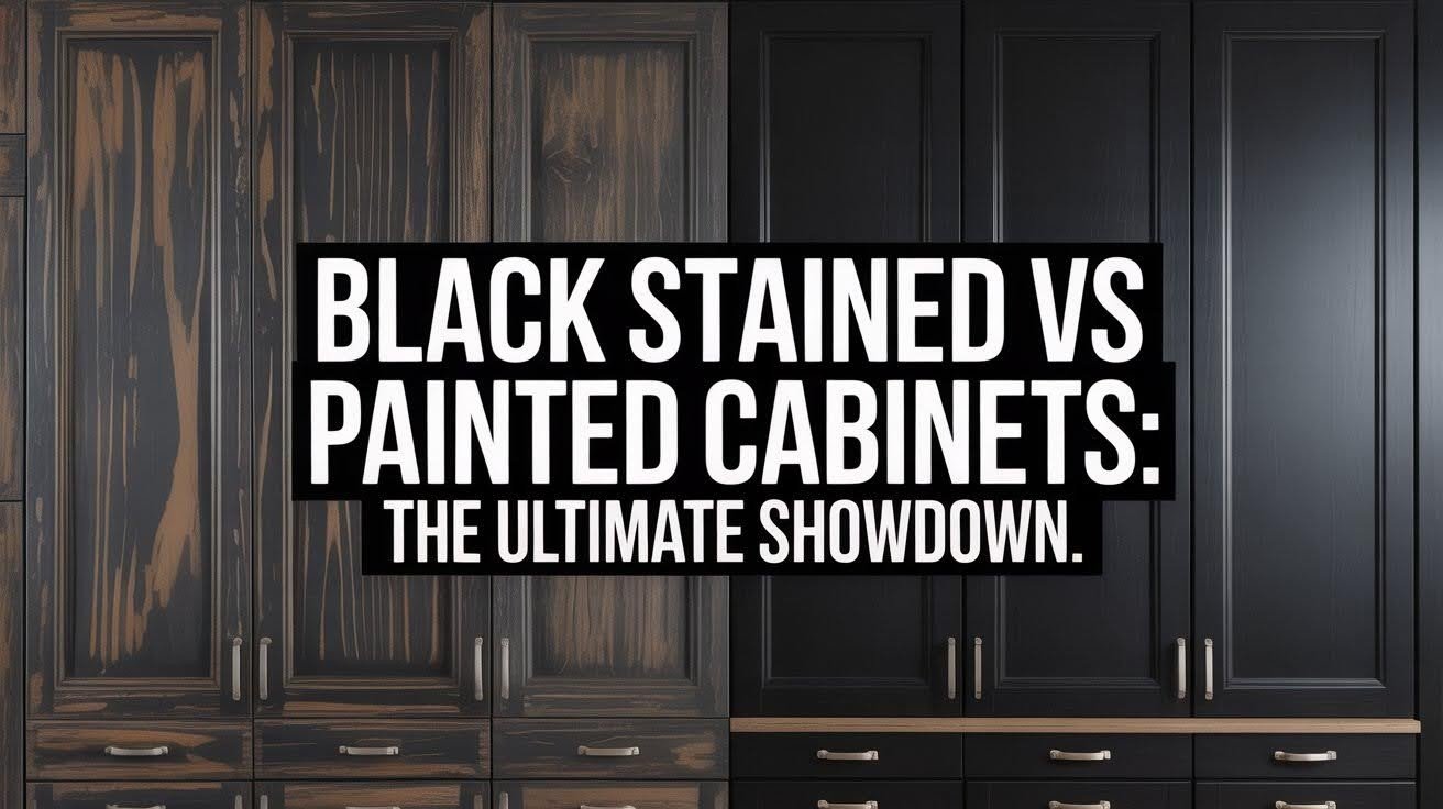 Black stained cabinets show wood grain for natural depth, while painted cabinets provide smooth, uniform coverage for modern aesthetics.